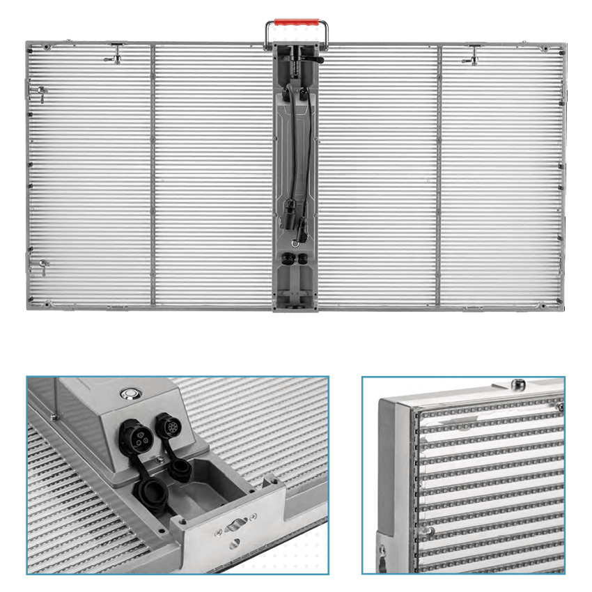Genel Özellikler 500×1000 Hafif ve İnce Tasarım Kolay Servis ve Kurulum Işığı ve Görüntüyü Kapatmayan Transparan Yapı Yüksek Parlaklık ile Güneş Işığında Kullanılabilme Dikey ve Yatay Kurulum Rental, Fixed, Semi, Indoor ve Outdoor